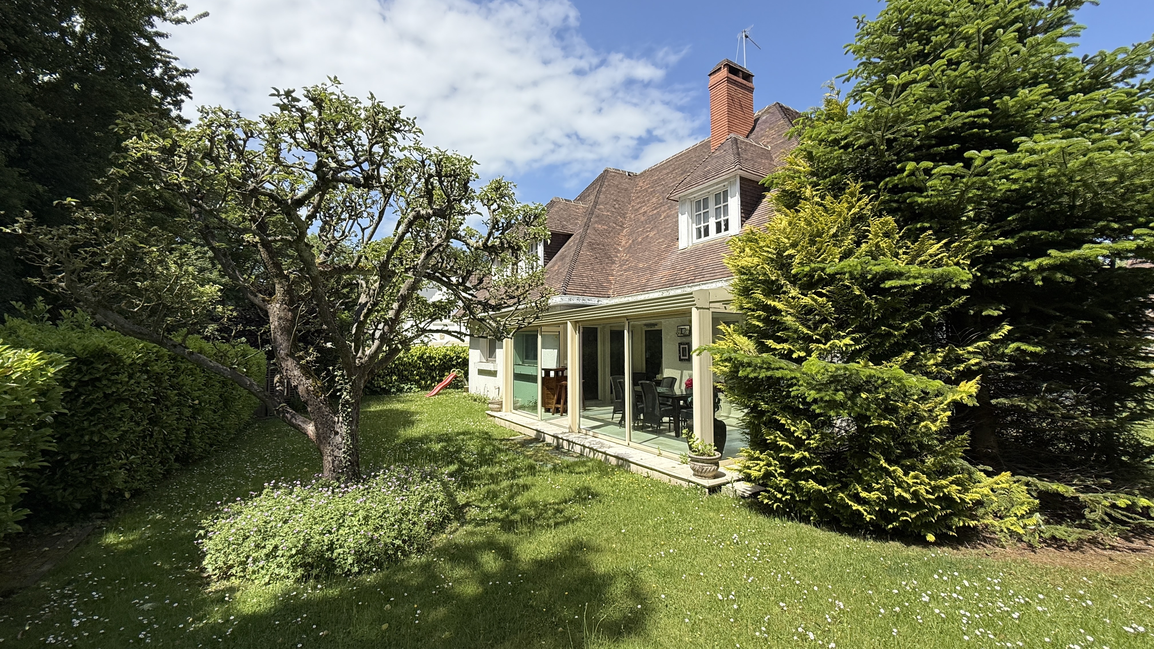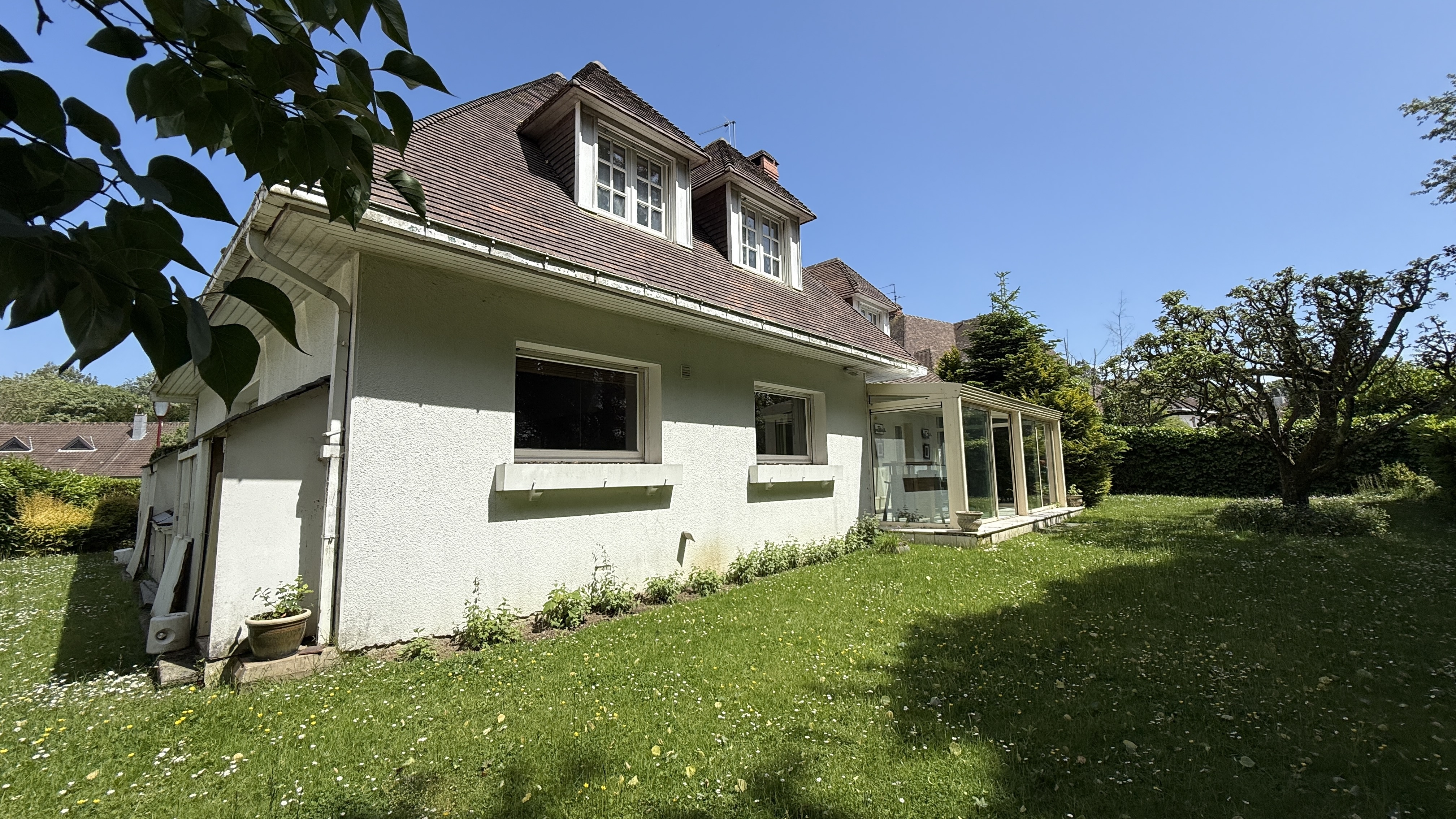 Une veranda bien exposéé, grand garage et exterieur agréable.